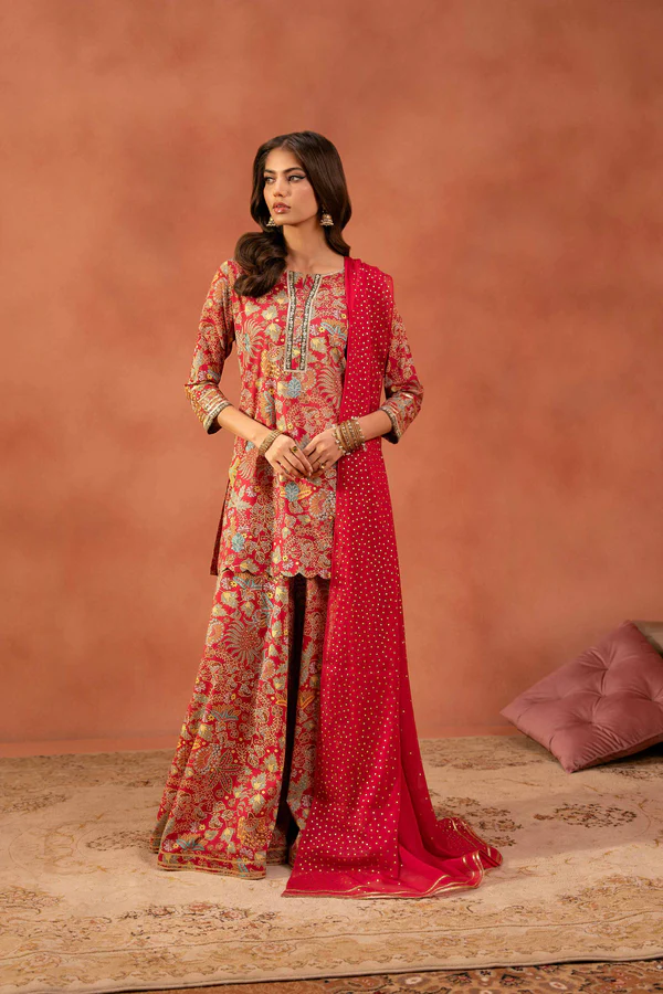 3 Piece – Printed Embroidered Suit – NSKFE25-166