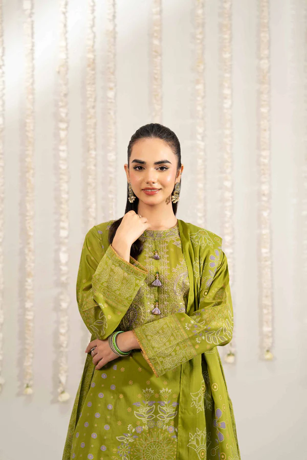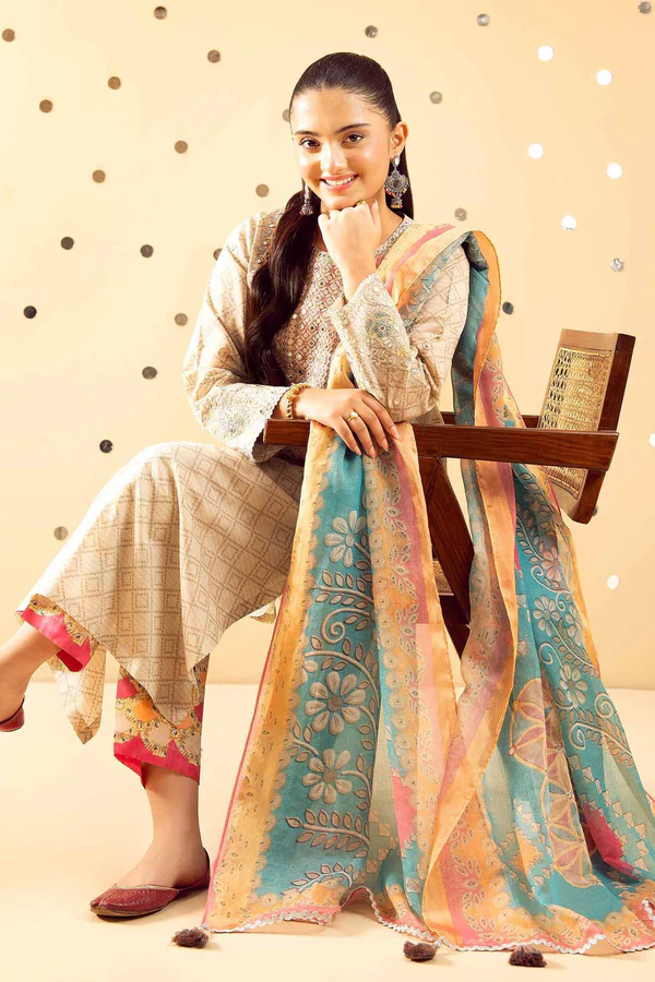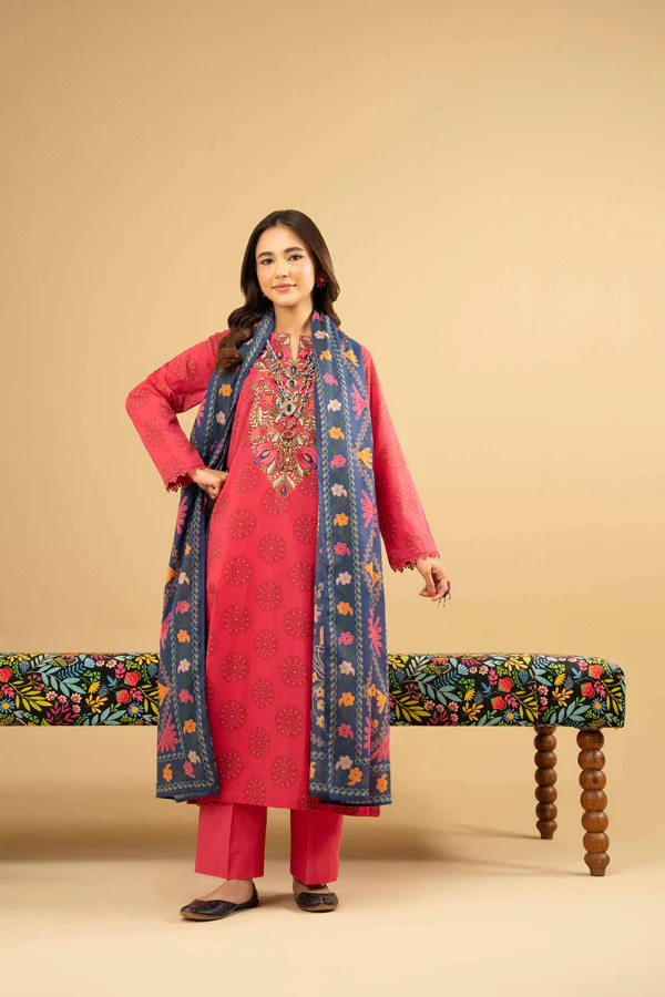 3 Piece – Printed Embroidered Suit – NSPE25-445