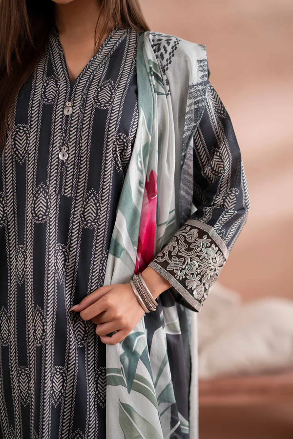 3 Piece – Printed Embroidered Suit – PS25-196 MOROCCAN