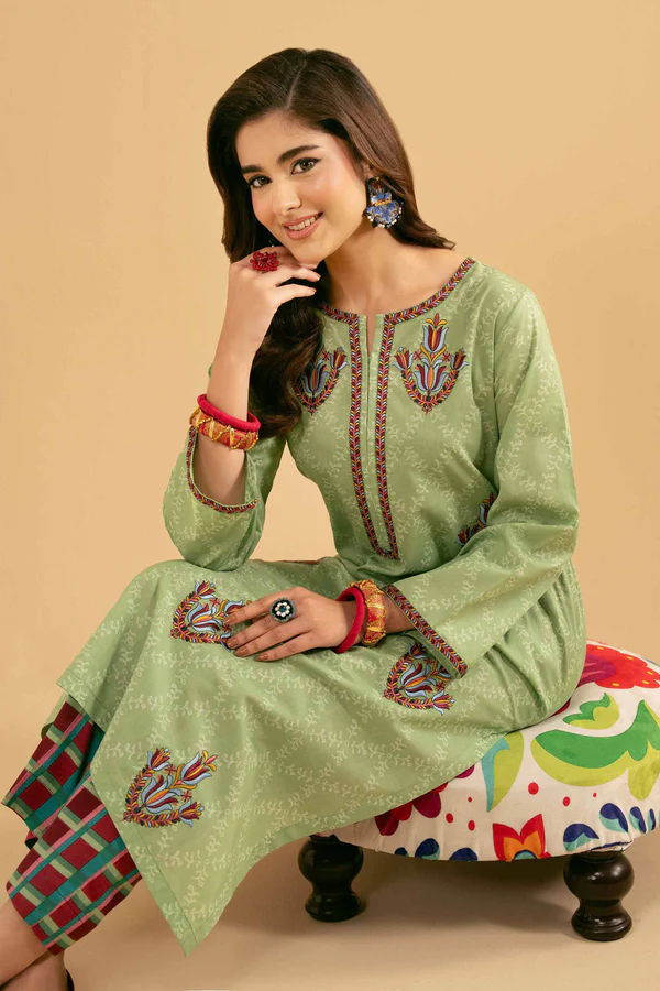 2 Piece – Printed Embroidered Suit – NSPE25-486 (FOLK ART)