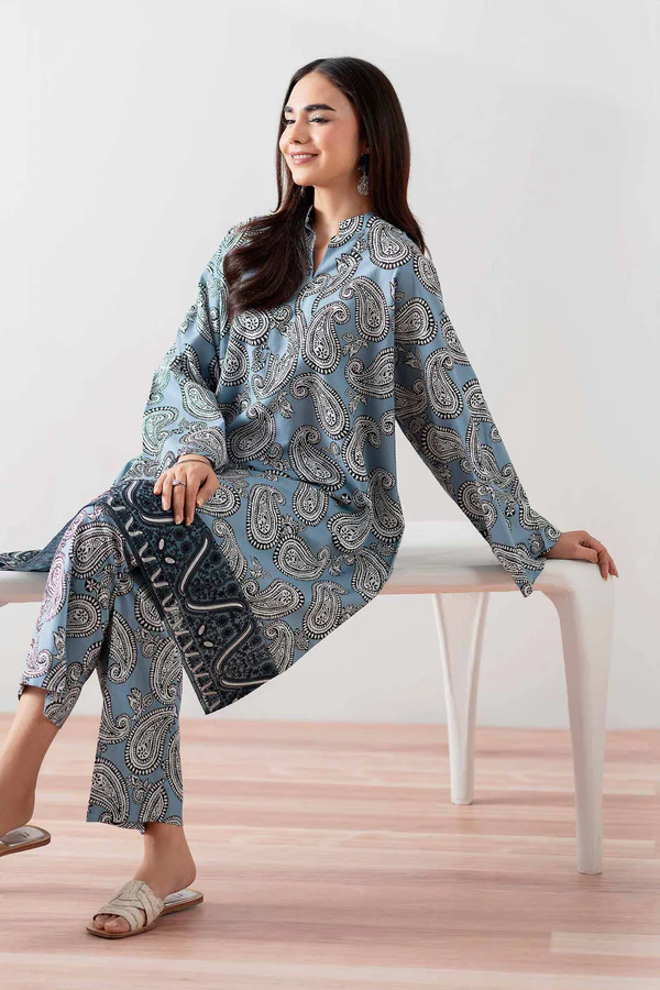 2 Piece – Printed Embroidered Suit – NSPS25-138