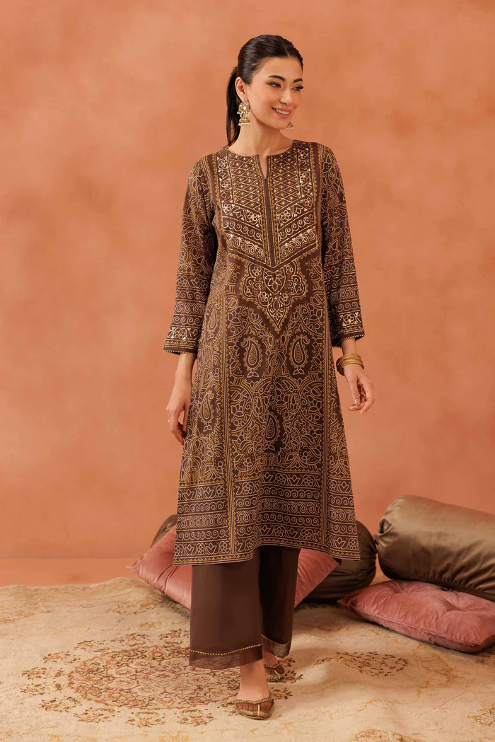 Make a truly elegant statement with this printed two-piece suit from the latest luxury pret summer collection.