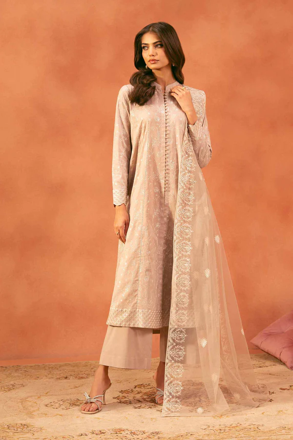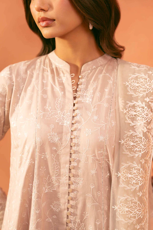 Make a truly elegant statement with this embroidered three-piece suit from the latest Luxury Pret Summer Collection, a perfect blend of classic craftsmanship and modern sophistication.