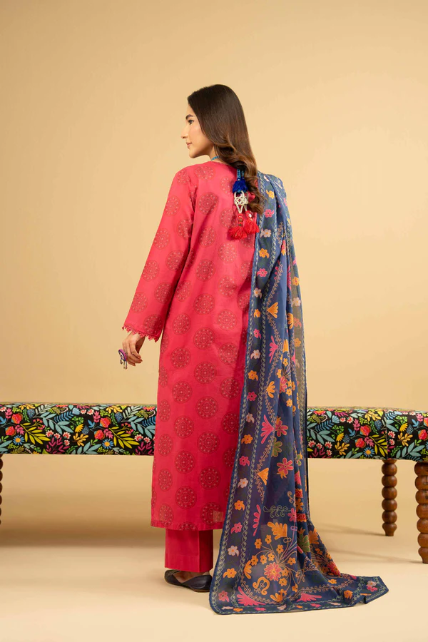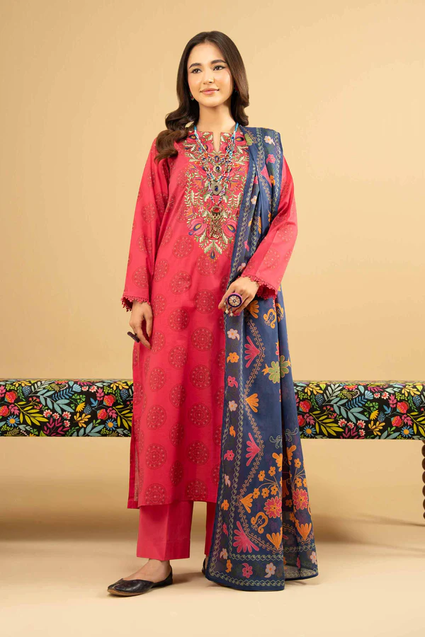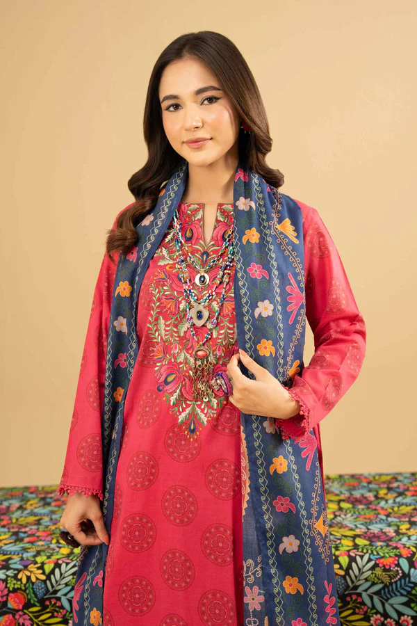 3 Piece – Printed Embroidered Suit – NSPE25-445