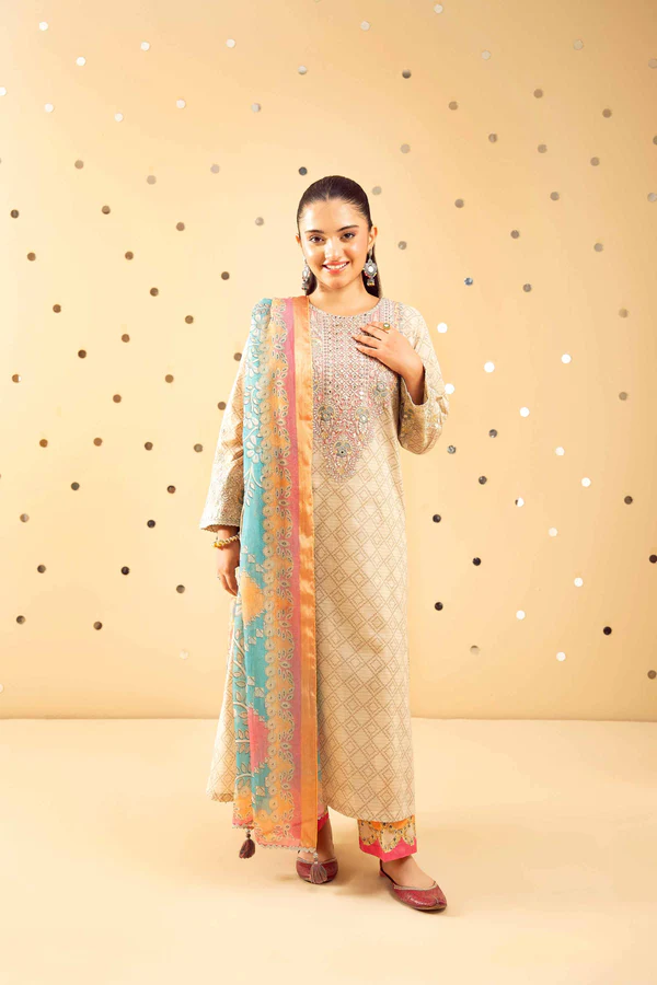 3 Piece – Printed Embroidered Suit – NSPE25-489 MIRROR WORK