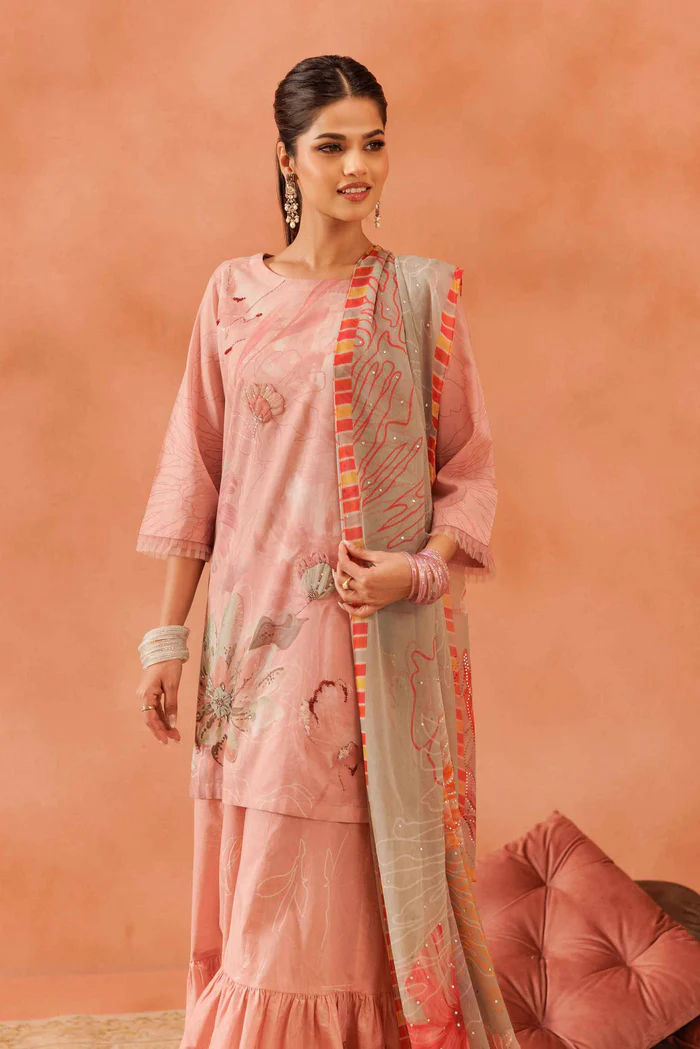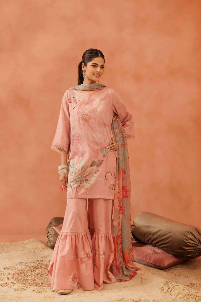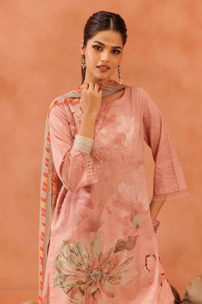 Make a truly elegant statement in this printed three-piece suit, beautifully crafted from the latest Luxury Pret Summer Collection.