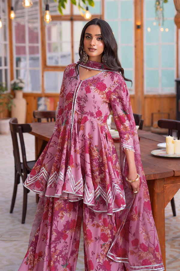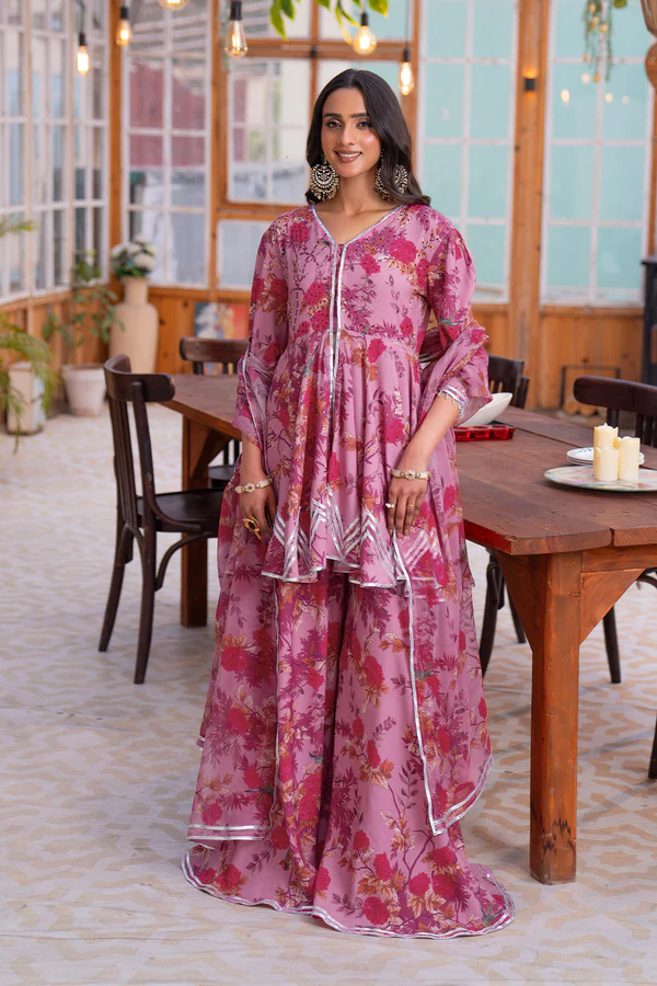 Digitally printed sharara with gotta edgings