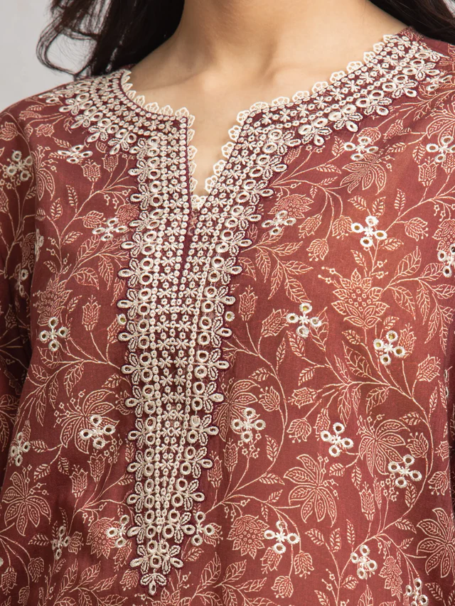 Maroon Embroidered Cambric 3 Piece – SAF30033