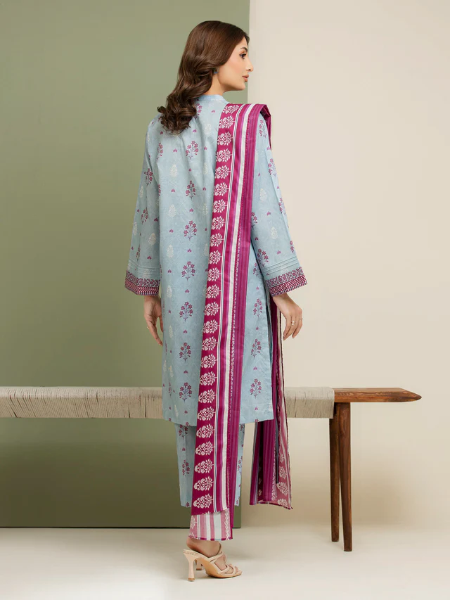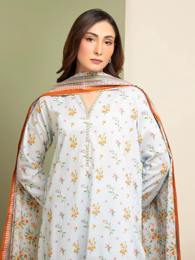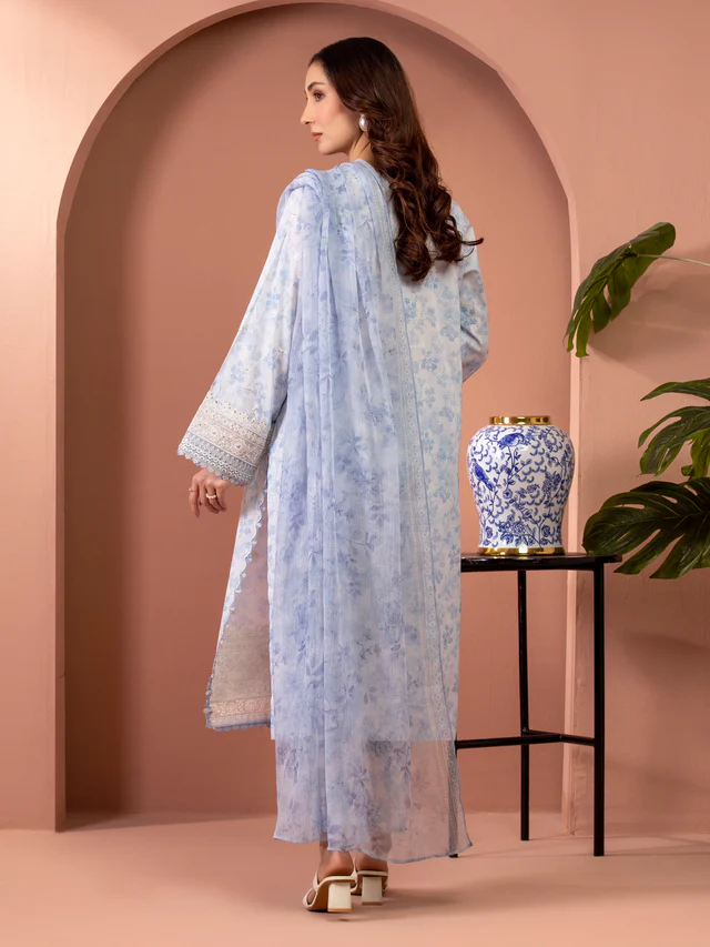 Unstitched Light Blue Printed Lawn 3 Piece – SAF35158