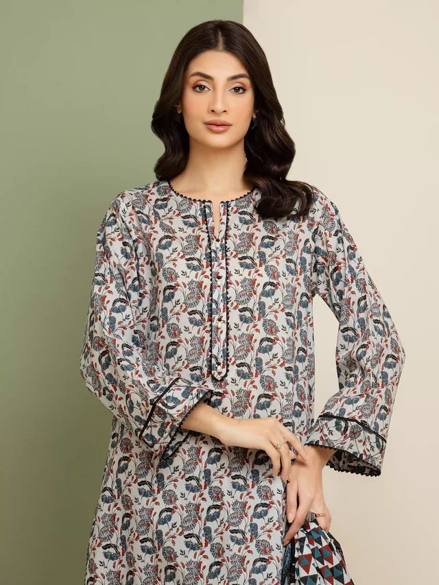 Unstitched Light Grey Printed Lawn 3 Piece – SAF35244