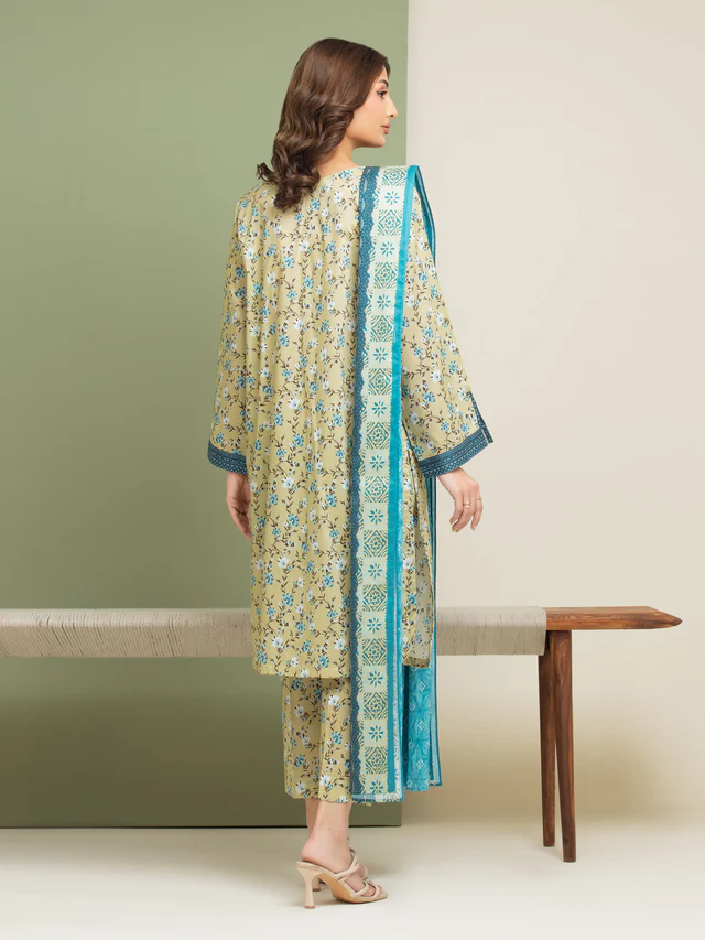 Unstitched Olive Printed Lawn 3 Piece – SAF35186